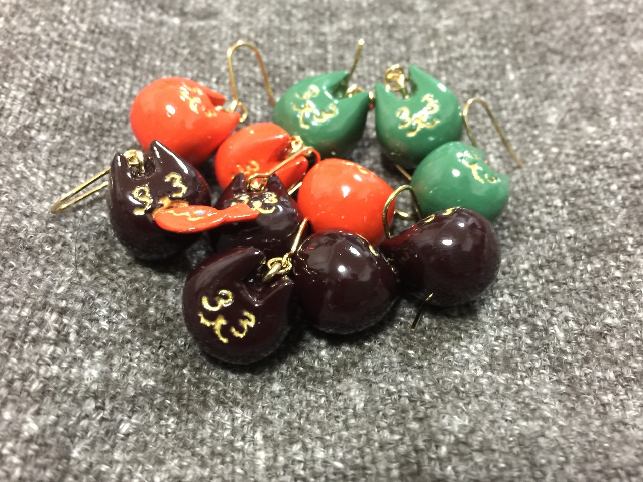 ホニャネコの顔がま〜るい玉のような手作りピアス。